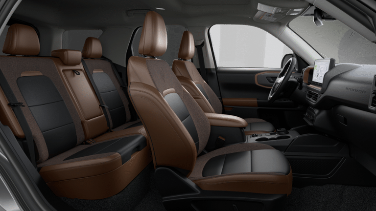 - Front seat upholstery: Cloth and leatherette front seat upholstery