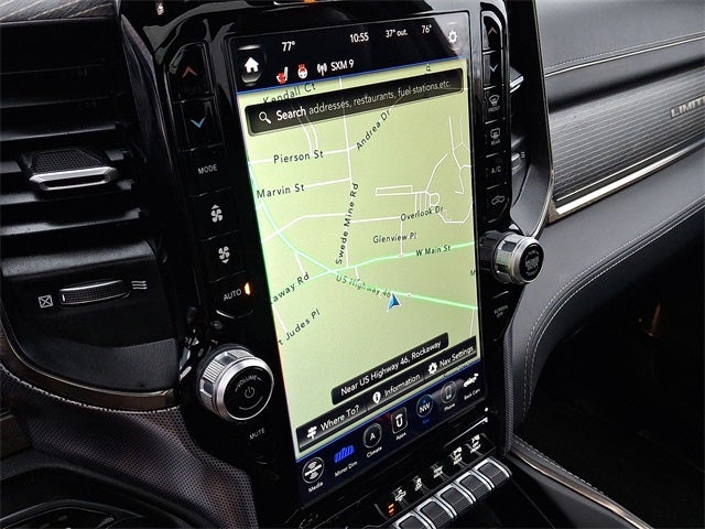 Bed Utility Group (4 Adjustable Cargo Tie-Down Hooks, Deployable Bed Step, and Pick-Up Box Lighting), Body Color Bumper Group (Body Color Front Bumper and Body Color Rear Bumper w/Step Pads), Limited Level 1 Equipment Group (Adaptive Cruise Control w/Stop & Go, Full Speed Forward Collision Warning Plus, Lane Keep Assist, Parallel & Perp Park Assist w/Stop, and Ventilated Rear Seats), Protection Group, Quick Order Package 27M Limited, Ram Combined Certified, 10 Speakers, 3.21 Rear Axle Ratio, 33 Gallon Fuel Tank, 4-Wheel Disc Brakes, 48V Belt Starter Generator, ABS brakes, Adjustable pedals, Air Conditioning, Alloy wheels, AM/FM radio: SiriusXM with 360L, Anti-Spin Differential Rear Axle, Apple CarPlay/Android Auto, Audio memory, Auto High-beam Headlights, Auto-dimming door mirrors, Auto-dimming Rear-View mirror, Auto-leveling suspension, Automatic temperature control, Bodyside moldings, Brake assist, Bumpers: chrome, Compass, Delay-off headlights, Dome Dual LED Reading Lamp, Driver door bin, Driver vanity mirror, Dual front impact airbags, Dual front side impact airbags, Dual-Pane Panoramic Sunroof, Electronic Stability Control, Emergency communication system: SiriusXM Guardian, Front anti-roll bar, Front Bucket Seats, Front Center Armrest w/Storage, Front dual zone A/C, Front fog lights, Front reading lights, Front wheel independent suspension, Fully automatic headlights, Garage door transmitter, Genuine wood console insert, Genuine wood dashboard insert, Genuine wood door panel insert, Heated door mirrors, Heated front seats, Heated rear seats, Heated steering wheel, Illuminated entry, Leather steering wheel, LED Dome/Reading Lamp, Low tire pressure warning, Memory seat, Navigation System, Occupant sensing airbag, Outside temperature display, Overhead airbag, Overhead console, Panic alarm, ParkView Rear Back-Up Camera, Passenger door bin, Passenger vanity mirror, Pedal memory, Power door mirrors, Power driver seat, Power passenger seat, Power steering, Power windows, Premium Leather Trimmed Bucket Seats, Radio data system, Radio: Uconnect 12 w/Navigation, Rain sensing wipers, Rear anti-roll bar, Rear seat center armrest, Rear step bumper, Rear window defroster, Remote keyless entry, Security system, Speed control, Split folding rear seat, Steering wheel mounted audio controls, Tachometer, Telescoping steering wheel, Tilt steering wheel, Traction control, Trailer Brake Control, Tri-Fold Tonneau Cover, Trip computer, Turn signal indicator mirrors, Variably intermittent wipers, Ventilated front seats, Voltmeter, and Wheels: 20 x 9 Polished w/Inserts.