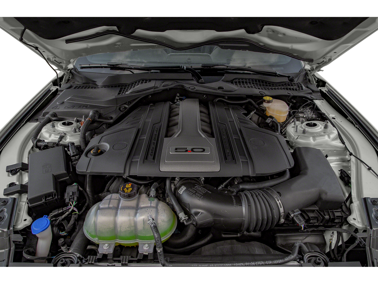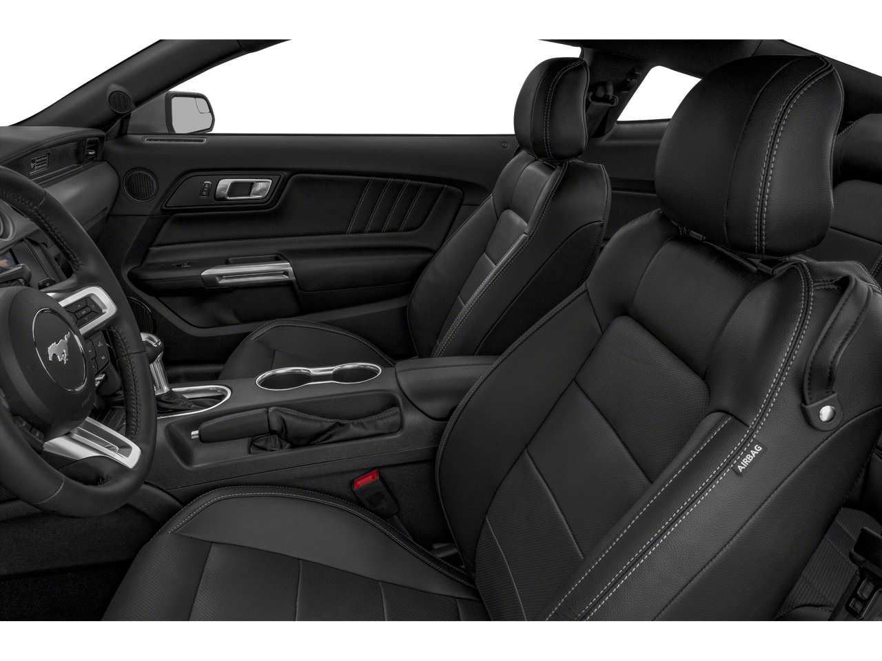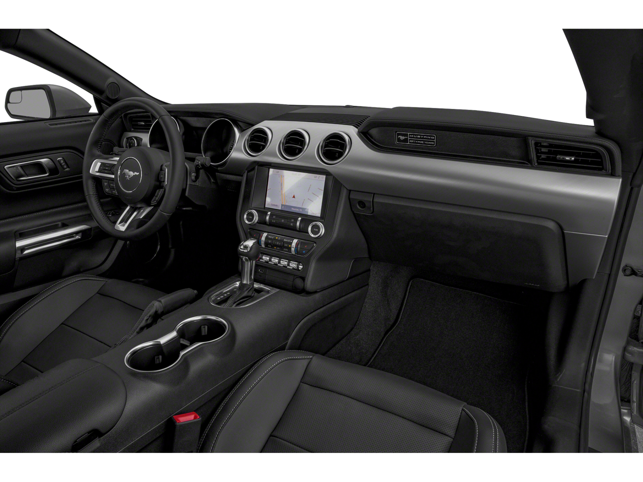 Black Accent Package (Black GT, 5.0 & Pony Badges, Black Mirror Caps, Black Rear Spoiler, Painted Black Roof, and Wheels: 19 x 8.5 Ebony Black-Painted Aluminum), Enhanced Security Package (Active Anti-Theft System and Wheel Locking Kit), Equipment Group 401A (12 LCD Digital Instrument Cluster w/MyColor, Heated Steering Wheel, Integrated Turn Signals, Leather-Trimmed Bucket Seats w/Color Accents, and Memory Driver Seat, Mirrors & Ambient Lighting), Ford Safe & Smart Package (Adaptive Cruise Control and Voice-Activated Touch-Screen Navigation System), 4-Wheel Disc Brakes, 9 Speakers, ABS brakes, Active Valve Performance Exhaust, Air Conditioning, Alloy wheels, AM/FM radio: SiriusXM, AM/FM Stereo, Auto High-beam Headlights, Auto-dimming Rear-View mirror, Automatic temperature control, Brake assist, Bumpers: body-color, Climate Controlled Heated/Cooled Front Seats, Compass, Delay-off headlights, Driver door bin, Driver vanity mirror, Dual front impact airbags, Dual front side impact airbags, Electronic Stability Control, Emergency communication system: 911 Assist, Exterior Parking Camera Rear, Four wheel independent suspension, Front anti-roll bar, Front Bucket Seats, Front Center Armrest, Front dual zone A/C, Front fog lights, Front reading lights, Fully automatic headlights, Garage door transmitter, Heated door mirrors, Heated front seats, Illuminated entry, Knee airbag, Leather Shift Knob, Leather-Trimmed Bucket Seats, Linked Graphite Aluminum Instrument Panel, Low tire pressure warning, Occupant sensing airbag, Outside temperature display, Overhead airbag, Overhead console, Panic alarm, Passenger door bin, Passenger vanity mirror, Power door mirrors, Power driver seat, Power passenger seat, Power steering, Power windows, Premium Floor Mats w/Accent Stitch, Radio data system, Rain sensing wipers, Rear anti-roll bar, Rear window defroster, Remote keyless entry, Security system, SiriusXM Radio, Speed control, Speed-sensing steering, Speed-Sensitive Wipers, Split folding rear seat, Spoiler, Steering wheel mounted audio controls, SYNC 3 Communications & Entertainment System, Tachometer, Telescoping steering wheel, Tilt steering wheel, Traction control, Trip computer, Variably intermittent wipers, Ventilated front seats, Voltmeter, and Wheels: 18 x 8 Machined-Face Aluminum.