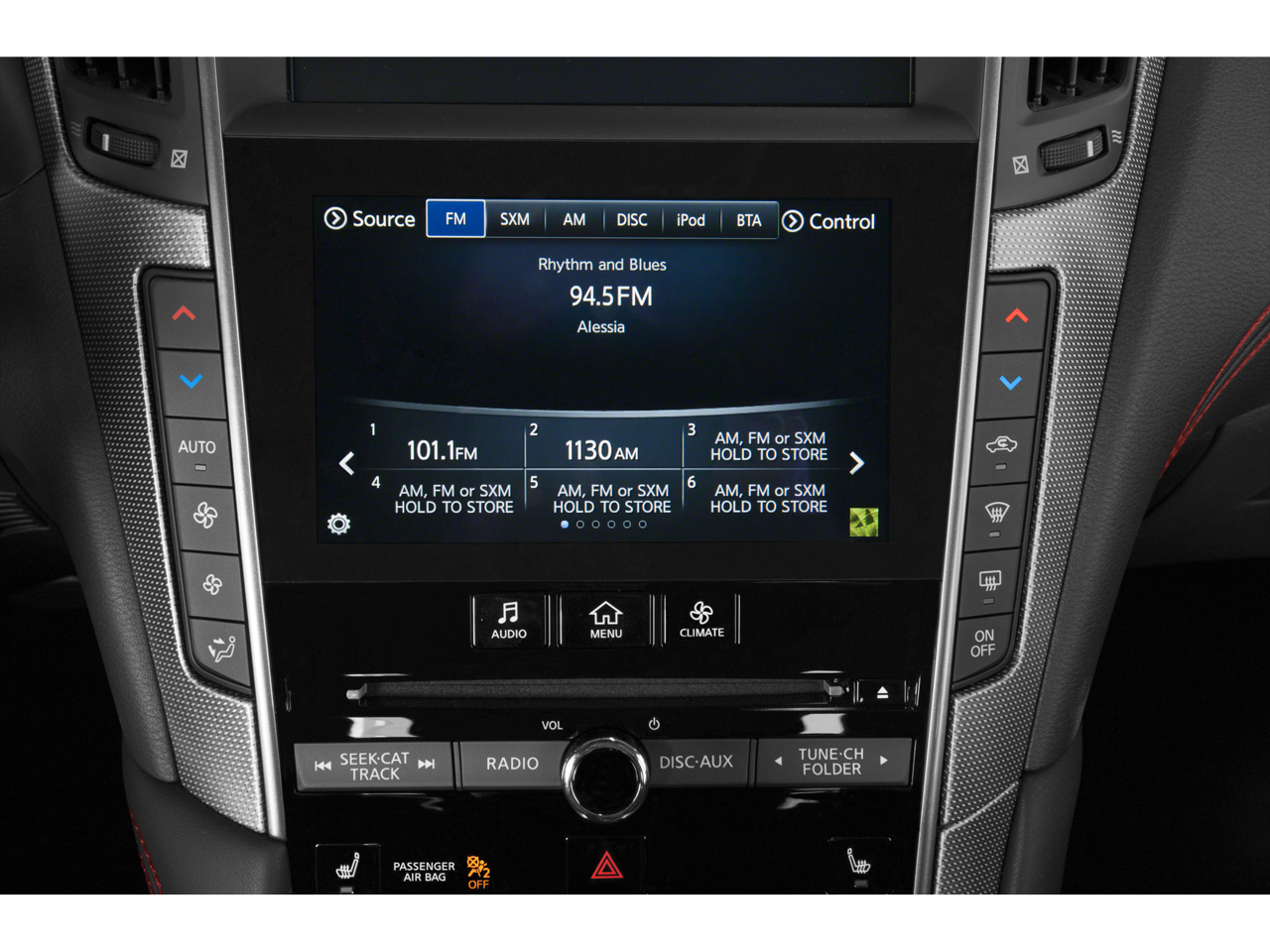 - Radio: INFINITI InTouch w/Navigation -inc: AM/FM/HD and CD, 16 speakers Bose Performance Series audio w/Bose Centerpoint simulated surround, navigation w/lane guidance, 3D building graphics, premium traffic and MapCare, voice recognition for navigation functions, including 1-shot voice destination entry, Apple CarPlay, Siri Eyes Free, Android Auto, Bluetooth® hands-free phone system w/hand-free text messaging assistant, steaming audio via Bluetooth®, 2 illuminated USB connection ports (1 type A, 1 type C), auxiliary audio input, SiriusXM radio w/advanced audio features w/3-month complimentary trial and Wi-Fi hotspot
