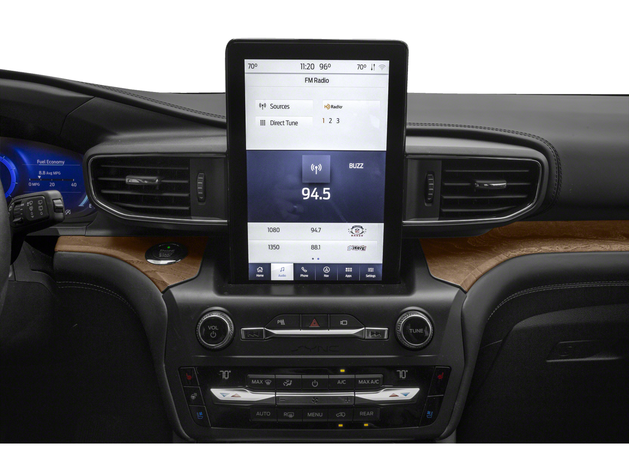 Experience luxury and power with this Black 2022 Ford Explorer Platinum AWD. Equipped with a robust EcoBoost 3.0L Twin Turbo V6 engine and a 10-speed shiftable automatic transmission, this SUV delivers both exhilarating performance and refined comfort. The Platinum trim offers premium features such as leather-trimmed seats, heated and ventilated front seats, a 12.3-inch customizable instrument cluster, and a Bang & Olufsen premium sound system. Stay connected and in control with SYNC infotainment, Apple CarPlay, Android Auto, and FordPass Connect. Advanced safety comes standard with adaptive cruise control, lane centering, front and rear automatic emergency braking with pedestrian detection, blind spot monitoring, and a surround view camera system. Convenience features include a power-operated rear liftgate, hands-free entry, third-row seating with power folding, and a dual-panel moonroof. Tackle any road with confidence thanks to AWD, the Class IV Trailer Tow Package, and Hill Descent Control. If you're looking for a spacious, feature-packed SUV that blends capability with first-class comfort, the 2022 Explorer Platinum is ready to impress.