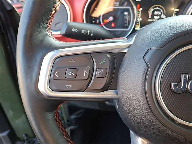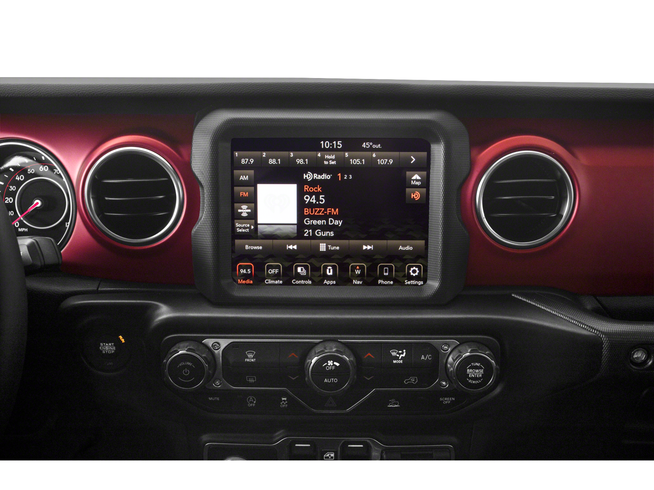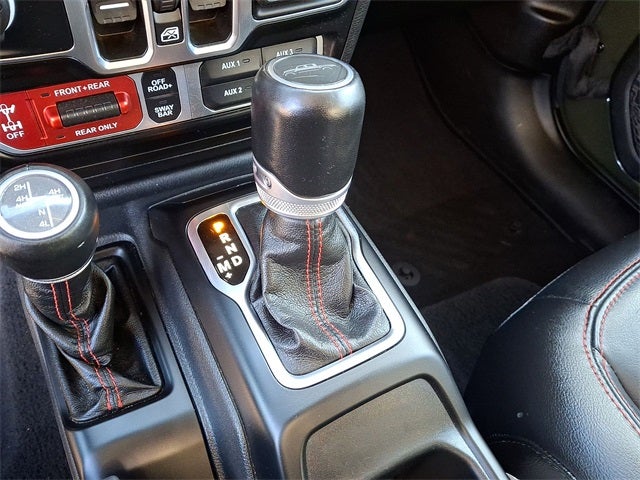 Auxiliary Switch Group (240 Amp Alternator, 700 Amp Maintenance Free Battery, and Auxiliary Switches), Cold Weather Group (Heated Front Seats and Heated Steering Wheel), LED Lighting Group (Daytime Running Lamps LED Accents, Front LED Fog Lamps, LED Park Turn Lamps, LED Premium Reflector Headlamps, and LED Taillamps), Quick Order Package 24R, Safety Group (Blind Spot & Cross Path Detection and ParkSense Rear Park Assist System), Trailer Tow Package (Class IV Receiver Hitch, Heavy-Duty Engine Cooling, and Trailer Hitch Zoom), 4-Wheel Disc Brakes, 4:1 Rock-Trac HD Full Time 4WD System, 4.10 Rear Axle Ratio, 9 Speakers, 97 MPH Vehicle Max Speed Calibration, ABS brakes, Air Conditioning, Alloy wheels, AM/FM radio: SiriusXM, Apple CarPlay/Android Auto, Auto-dimming Rear-View mirror, Automatic temperature control, Black 3-Piece Hard Top, Body Color Fender Flares (2-Piece), Brake assist, Compass, Corning Gorilla Glass, Delay-off headlights, Driver door bin, Driver vanity mirror, Dual front impact airbags, Dual front side impact airbags, Electronic Stability Control, Emergency communication system: SiriusXM Guardian, Freedom Panel Storage Bag, Front anti-roll bar, Front Bucket Seats, Front Center Armrest w/Storage, Front dual zone A/C, Front fog lights, Front License Plate Bracket, Front reading lights, Fully automatic headlights, Garage door transmitter, Heated door mirrors, Illuminated entry, Integrated roll-over protection, Leather steering wheel, Low tire pressure warning, MOPAR Spray In Bedliner, Navigation System, Occupant sensing airbag, Outside temperature display, Panic alarm, ParkView Rear Back-Up Camera, Passenger door bin, Passenger vanity mirror, Performance Suspension, Power door mirrors, Power steering, Power windows, Premium Cloth Low-Back Bucket Seats, Radio data system, Radio: Uconnect 4C Nav w/8.4 Display, Rear anti-roll bar, Rear reading lights, Rear Sliding Window, Rear Window Defroster, Remote keyless entry, Remote Start System, Roll-Up Tonneau Cover, Security system, Speed control, Split folding rear seat, Star MOPAR Body Side Graphic, Steel Front Bumper, Steering wheel mounted audio controls, Tachometer, Telescoping steering wheel, Tilt steering wheel, Traction control, Trip computer, Variably intermittent wipers, Voltmeter, Wheels: 17 x 7.5 Granite Crystal Aluminum, and Wheels: 17 x 7.5 Polished Black Aluminum.