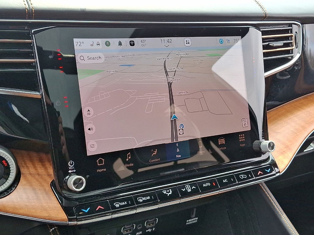 Experience luxury and power in this dark blue 2022 Wagoneer Grand Wagoneer Series III 4x4 SUV. Driven by a robust HEMI 6.4L V8 engine with 471hp, this top-tier SUV is loaded with premium features. Enjoy a panoramic moonroof, adaptive air suspension, and full leather-trimmed bucket seats with both heating and ventilation-including massaging front seats and ventilated rear seats for ultimate comfort. Stay connected with Uconnect infotainment, wireless Apple CarPlay/Android Auto, Amazon Alexa integration, and a breathtaking McIntosh premium audio system with 22 speakers. Advanced safety technologies include adaptive cruise control, intersection/junction automatic emergency braking, lane keeping assist, blind spot monitoring, night vision, surround view cameras, and rear cross traffic alert. Third-row passengers enjoy their own power outlets, climate control, and power-folding seats. With a Class IV trailer hitch, active 4x4 system, and electronic hi-lo selector, this Grand Wagoneer is ready for every adventure. Contact us today to schedule a test drive and experience true automotive excellence.