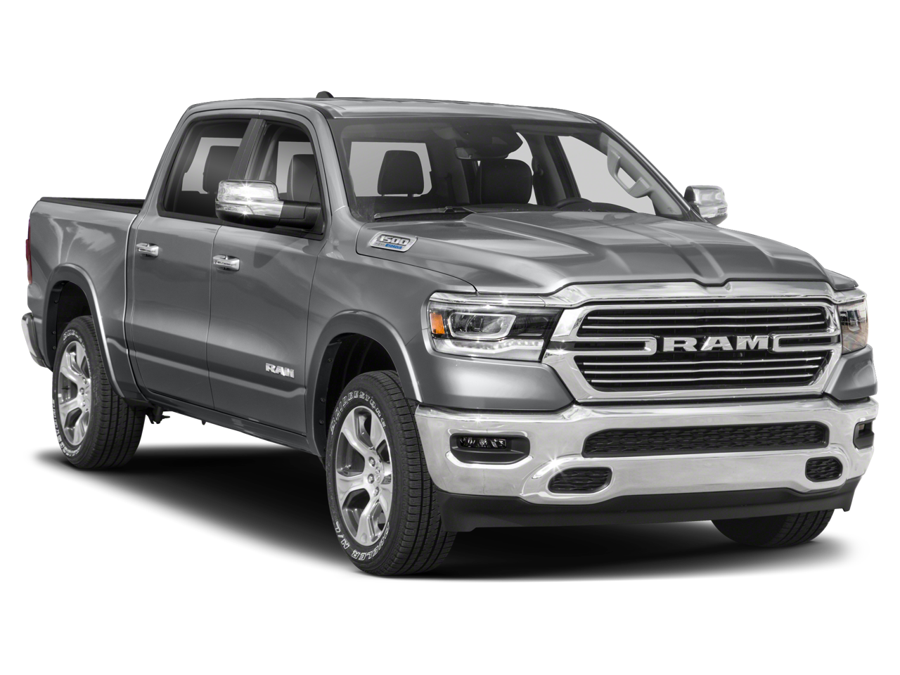 Experience power and luxury with this White 2022 Ram 1500 Laramie Crew Cab 4x4. Equipped with the legendary HEMI 5.7L V8 engine and an 8-speed automatic transmission, this truck delivers impressive performance on and off the road. The Laramie Level I Equipment Group adds premium features like leather-trimmed bucket seats, heated and ventilated front seats, a heated steering wheel, and customizable 7-inch instrument cluster. Stay connected with Uconnect's 8.4-inch touchscreen featuring wireless Apple CarPlay and Android Auto, plus hotspot Wi-Fi. Safety is paramount, with front automatic emergency braking, pre-collision warning systems, and a rearview camera. Enjoy added convenience from remote engine start, power-folding heated mirrors, power-adjustable pedals, and a power locking tailgate. This truck is ready for work or play with a Class IV trailer hitch, trailer brake controller, 4x4 capability, and rear underseat storage. Drive in style with chrome bumpers, LED headlights, and 20-inch aluminum alloy wheels. Don't miss your chance to own a premium, versatile pickup loaded with features.