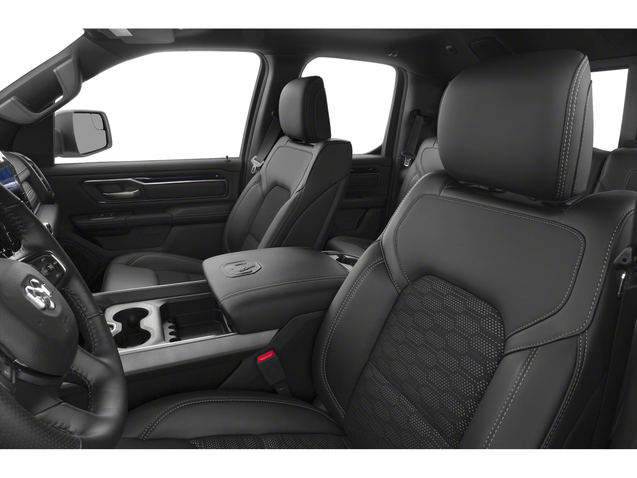 Bed Utility Group (MOPAR 4 Adjustable Cargo Tie-Down Hooks, MOPAR Deployable Bed Step, and MOPAR Spray In Bedliner), Quick Order Package 29Y, TRX Level 2 Equipment Group (#2 Seat Foam Cushion, 2-Door Passive Entry, Front Door Locks, 4 Way Front Headrests, Blind Spot & Cross Path Detection, Body Color Door Handles, Bucket Seats, Center Console Parts Module, Digital Rearview Mirror, Driver Seat Memory, Driver/Passenger Wrapped Assist Handles, Exterior Mirrors w/Memory, Front Door Accent Lighting, Front Seat Back Map Pockets, Full Length Premium Upgraded Floor Console, harman/kardon 19 Speaker Premium Sound, Heads-Up Display, Heated Front Seats, Heated Second Row Seats, Heated Steering Wheel, IP LED Ambient Light Pipe, Leather Trimmed Bucket Seats, Leather/Suede Flat-Bottom Steering Wheel, LED CHMSL Lamp, Luxury Front Door Trim Panel, MOPAR Bright Pedal Kit, ParkSense Front/Rear Park Assist w/Stop, Pick-Up Box Lighting, Power 4-Way Driver Lumbar Adjust, Power 4-Way Passenger Lumbar Adjust, Power 8-Way Driver & Passenger Seats, Power Adjustable Pedals w/Memory, Premium Wrapped IP Bezel, Radio/Driver Seat/Mirrors/Pedals Memory, Rain Sensitive Windshield Wipers, Rear 60/40 Folding Seat, Rear 60/40 Folding Split Recline Seat, Rear Door Accent Lighting, Rear Underseat Compartment Storage, Rear Window Defroster, Remote Tailgate Release, Sun Visors w/Illuminated Vanity Mirrors, Surround View Camera System, Trailer Brake Control, Universal Garage Door Opener, Ventilated Front Seats, Ventilated Rear Seats, and Wireless Charging Pad), 10 Speakers, 3.55 Rear Axle Ratio, 4-Wheel Disc Brakes, ABS brakes, Adaptive suspension, Air Conditioning, Alloy wheels, AM/FM radio: SiriusXM with 360L, Apple CarPlay/Android Auto, Auto High-beam Headlights, Auto-dimming door mirrors, Auto-dimming Rear-View mirror, Automatic temperature control, Black Exterior Mirrors, Black Power-Fold Trailer Tow Mirrors, Brake assist, Cloth/Vinyl Bucket Seats, Compass, Delay-off headlights, Driver door bin, Dual front impact airbags, Dual front side impact airbags, Electronic Stability Control, Exterior Mirrors Courtesy Lamps, Exterior Mirrors w/Heating Element, Exterior Mirrors w/Supplemental Signals, Front anti-roll bar, Front Bucket Seats, Front Center Armrest w/Storage, Front dual zone A/C, Front fog lights, Front License Plate Bracket, Front reading lights, Front wheel independent suspension, Fully automatic headlights, Heated door mirrors, Illuminated entry, Leather Shift Knob, Leather steering wheel, Low tire pressure warning, Mirror Clearance/Running Lights, Mirror-Mounted Aux Reverse Lamps, MOPAR Off-Road Style Running Boards, MOPAR TRX Hood Graphics, Navigation System, Occupant sensing airbag, Outside temperature display, Overhead airbag, Overhead console, Panic alarm, ParkView Rear Back-Up Camera, Passenger door bin, Passenger vanity mirror, Power door mirrors, Power driver seat, Power steering, Power windows, Power-Folding Mirrors, Radio data system, Radio: Uconnect 5 Nav w/12.0 Display, Rear seat center armrest, Rear step bumper, Remote keyless entry, Security system, Speed control, Split folding rear seat, Sport steering wheel, Steering wheel mounted audio controls, Tachometer, Telescoping steering wheel, Tilt steering wheel, Traction control, Trailer Tow Mirrors, Trip computer, TRX Red Interior Accents, Turn signal indicator mirrors, Variably intermittent wipers, Voltmeter, and Wheels: 18 x 9 Black Paint/Polish Aluminum.