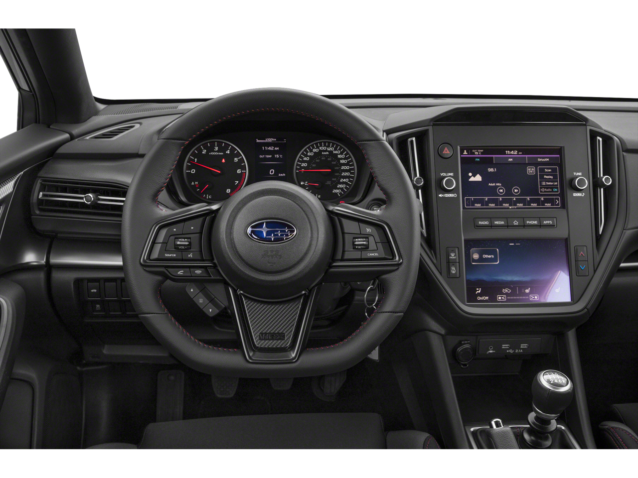Standard Model, 4-Wheel Disc Brakes, 6 Speakers, ABS brakes, Air Conditioning, All-Weather Floor Liners, Alloy Wheel Locks, Alloy wheels, AM/FM radio: SiriusXM, Auto High-beam Headlights, Auto-Dimming Mirror w/Compass & HomeLink, Auto-dimming Rear-View mirror, Automatic temperature control, Brake assist, Bumpers: body-color, Carbon Fiber Trunk Trim, Cloth Upholstery w/Red Stitching, Driver door bin, Driver vanity mirror, Dual front impact airbags, Dual front side impact airbags, Electronic Stability Control, Exterior Parking Camera Rear, Four wheel independent suspension, Front anti-roll bar, Front Bucket Seats, Front Center Armrest, Front reading lights, Fully automatic headlights, Ignition Red Body Side Molding, Illuminated entry, Knee airbag, Leather Shift Knob, Leather steering wheel, Low tire pressure warning, Occupant sensing airbag, Outside temperature display, Overhead airbag, Overhead console, Panic alarm, Passenger door bin, Passenger vanity mirror, Performance Design Front Bucket Seats, Power door mirrors, Power steering, Power windows, Radio data system, Radio: Subaru STARLINK Dual 7 Multimedia Plus Sys, Rear anti-roll bar, Rear window defroster, Remote keyless entry, Security system, Speed control, Speed-sensing steering, Split folding rear seat, Sport steering wheel, STARLINK/Apple CarPlay/Android Auto, Steering wheel mounted audio controls, STI Short Throw Shifter (WRX), Tachometer, Telescoping steering wheel, Tilt steering wheel, Traction control, Trip computer, Variably intermittent wipers, and Wheels: 17 x 8 Gray Finish Aluminum Alloy.