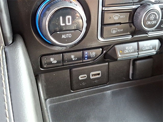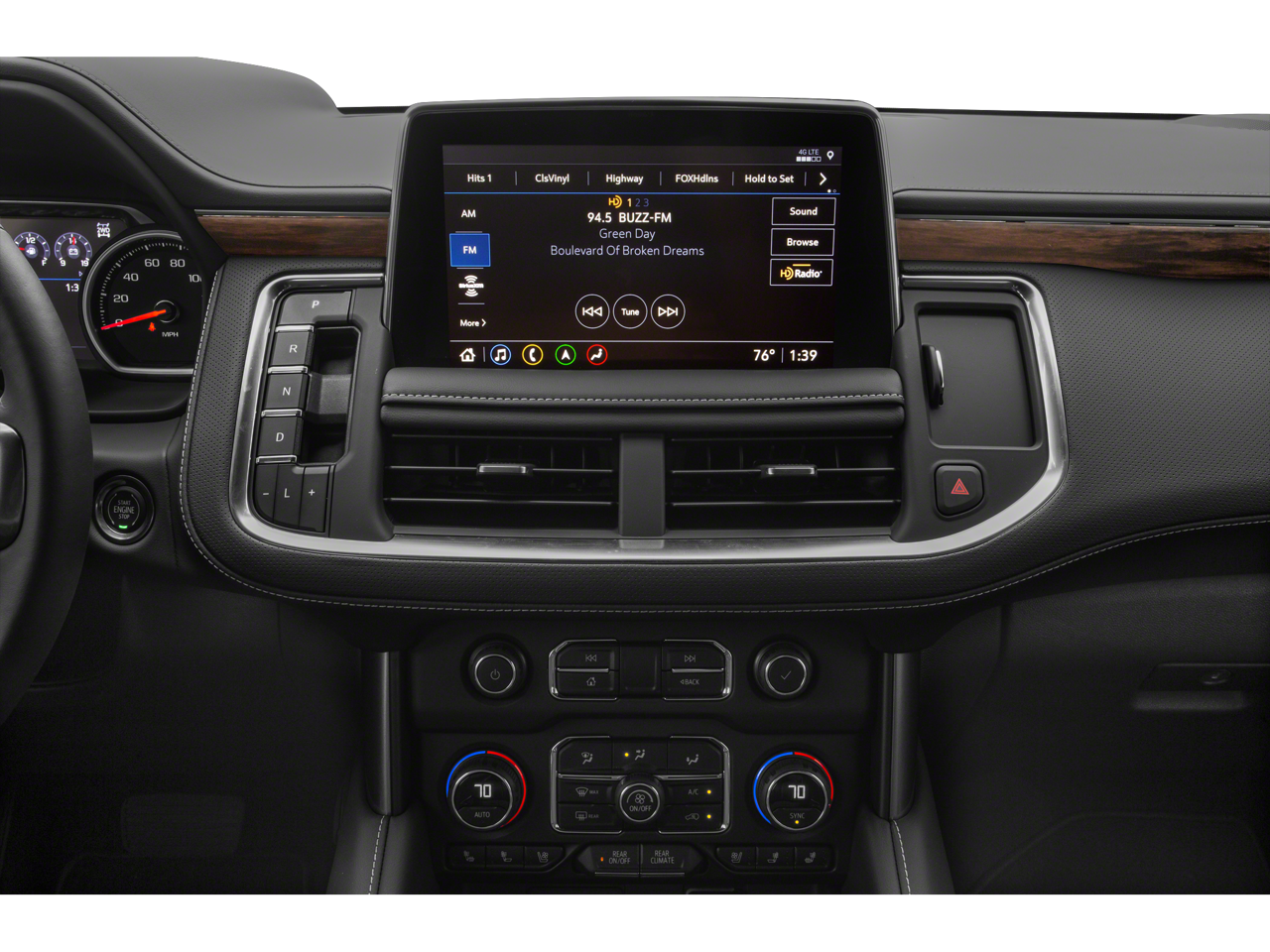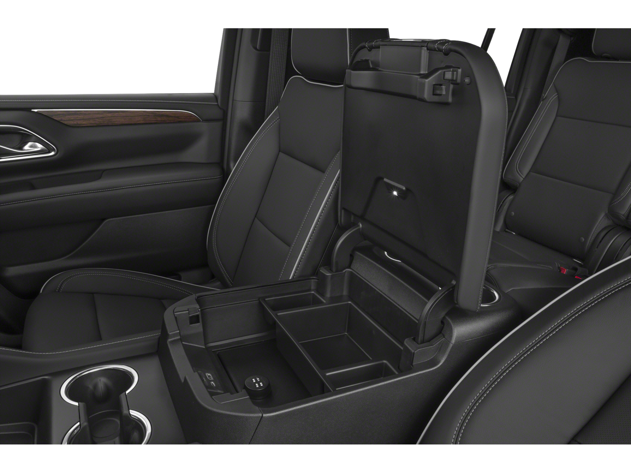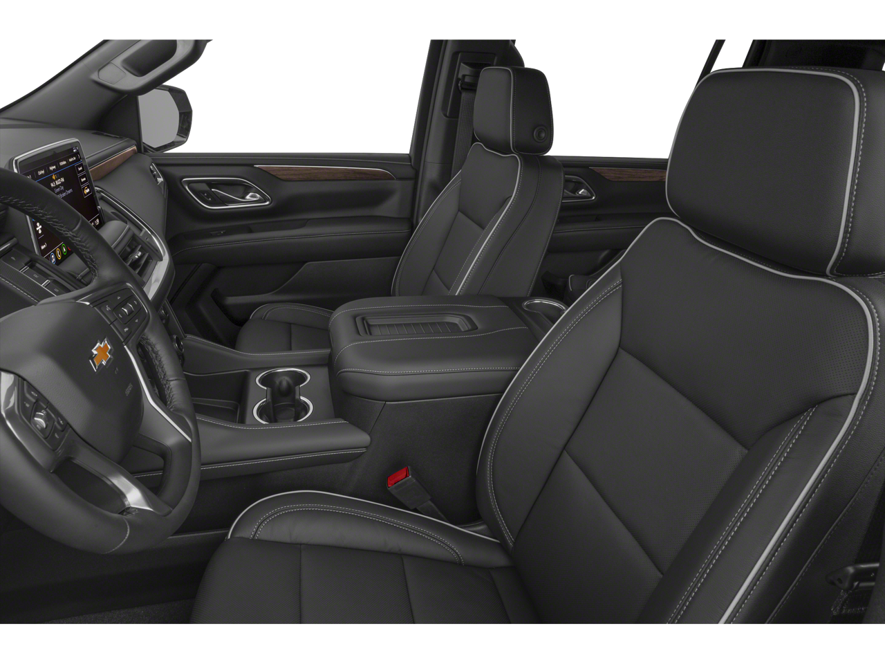 License Plate Front Mounting Package, Preferred Equipment Group 1LZ (1st & 2nd Row Color-Keyed Carpeted Floor Mats, 2-Speed Active Electronic AutoTrac Transfer Case, 3rd Row 60/40 Power-Folding Split-Bench, Auto-Dimming Inside Rear-View Mirror, Bose 10-Speaker Surround w/CenterPoint, Bright Front & Rear Door Sill Plates, Chrome Door Handles w/Body-Color Strip, Chrome Mirror Caps, Color-Keyed Carpeting Floor Covering, Driver & Front Outboard Passenger Airbags, Dual Exhaust System, Enhanced Driver Information Center, Floor Console, Hands-Free Rear Power Programmable Liftgate, Heated & Ventilated Driver & Front Passenger Seats, Heated 2nd Row Outboard Seats, Heated Driver & Front Passenger Seats, Heated Steering Wheel, Hill Descent Control, Infotainment Display, Lane Change Alert w/Side Blind Zone Alert, LED Daytime Running Lamps, Memory Settings, Outside Heated Power-Adjustable Mirrors, Power Release 2nd Row Bucket Seats, Power Tilt & Telescopic Steering Column, Rear Cross Traffic Alert, Remote Start, Safety Alert Seat, SiriusXM Radio w/360L, Universal Home Remote, Wireless Charging, and Wrapped Steering Wheel), 10 Speakers, 20 x 9 Polished Aluminum Wheels, 3.23 Rear Axle Ratio, 3rd row seats: split-bench, 4-Wheel Disc Brakes, ABS brakes, Adaptive suspension, Air Conditioning, Alloy wheels, AM/FM radio: SiriusXM with 360L, Apple CarPlay/Android Auto, Auto High-beam Headlights, Auto-dimming door mirrors, Auto-dimming Rear-View mirror, Auto-leveling suspension, Automatic temperature control, Brake assist, Bumpers: body-color, Compass, Delay-off headlights, Deleted 3 Years of Remote Access, Driver door bin, Driver vanity mirror, Dual front impact airbags, Dual front side impact airbags, Electronic Stability Control, Emergency communication system: OnStar and Chevrolet connected services capable, Four wheel independent suspension, Front anti-roll bar, Front Bucket Seats, Front Center Armrest, Front dual zone A/C, Front reading lights, Fully automatic headlights, Garage door transmitter, Heated door mirrors, Heated front seats, Heated rear seats, Heated steering wheel, Illuminated entry, Low tire pressure warning, Magnetic Ride Control Suspension, Memory seat, Navigation System, Not Equipped w/4-Way Driver & Fr Pass Pwr Lumbar, Occupant sensing airbag, Outside temperature display, Overhead airbag, Overhead console, Panic alarm, Passenger door bin, Passenger vanity mirror, Perforated Leather Seating Surfaces, Power door mirrors, Power driver seat, Power Liftgate, Power passenger seat, Power steering, Power windows, Premium audio system: Chevrolet Infotainment 3 Premium, Radio: Chevrolet Infotainment 3 Premium System, Rain sensing wipers, Rear air conditioning, Rear anti-roll bar, Rear reading lights, Rear window defroster, Rear window wiper, Remote keyless entry, Roof rack: rails only, Security system, Speed control, Speed-sensing steering, Split folding rear seat, Spoiler, Steering wheel memory, Steering wheel mounted audio controls, Tachometer, Telescoping steering wheel, Tilt steering wheel, Traction control, Trip computer, Turn signal indicator mirrors, Variably intermittent wipers, Ventilated front seats, and Voltmeter.