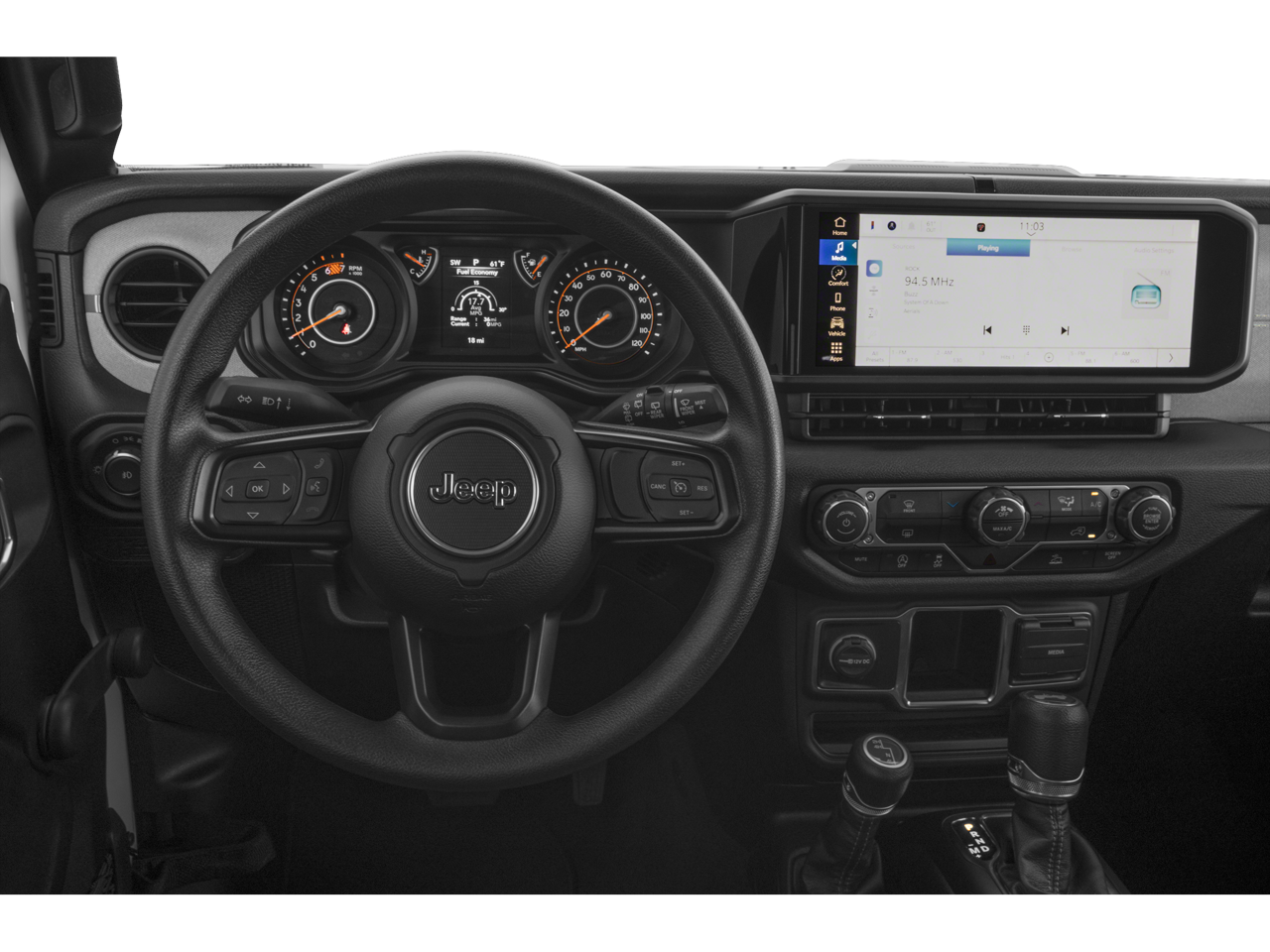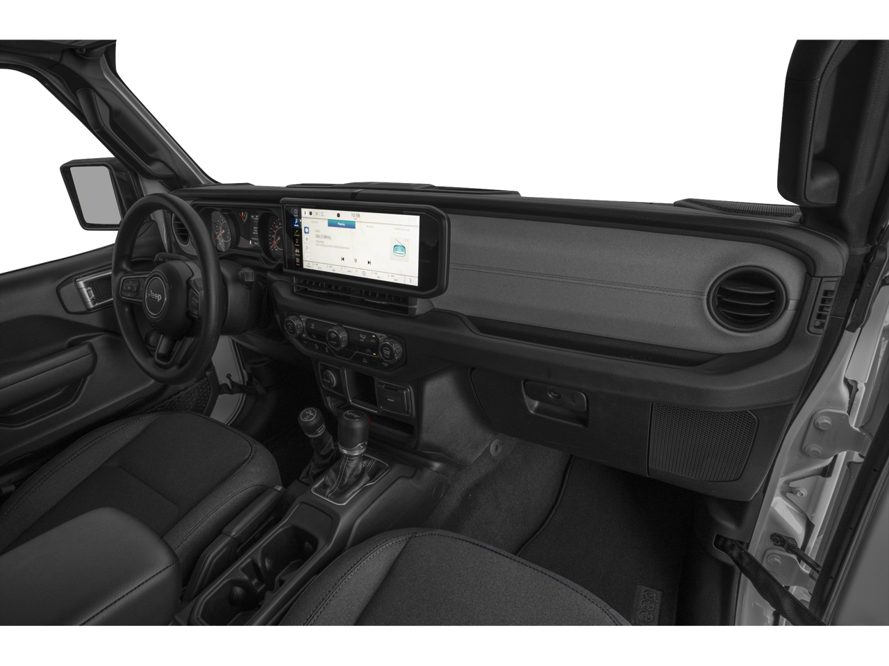 LED Headlamp & Fog Lamp Group (Front LED Fog Lamps and LED Premium Reflector Headlamps), Quick Order Package 23S Sport S, Quick Order Package 24S Sport S, FCA US LLC Certified Pre-Owned Certified, 110 MPH Vehicle Max Speed Calibration, 3.45 Overall Top Gear Ratio, 4-Wheel Disc Brakes, 8 Speakers, ABS brakes, AM/FM radio: SiriusXM with 360L, Apple CarPlay/Android Auto, Auxiliary Battery, Brake assist, Cloth Low-Back Bucket Seats, Compass, Delay-off headlights, Driver door bin, Driver vanity mirror, Dual front impact airbags, Dual front side impact airbags, Electronic Stability Control, Front anti-roll bar, Front Bucket Seats, Front Center Armrest w/Storage, Front fog lights, Front reading lights, Integrated roll-over protection, Low tire pressure warning, MOPAR All-Weather Floor Mats, Mopar Black Fuel Filler Door, Mopar Black Tubular Side Steps, MOPAR Satin Black Grille, Non-Locking Fuel Cap w/o Discriminator, Normal Duty Suspension, Occupant sensing airbag, Outside temperature display, Overhead airbag, ParkView Rear Back-Up Camera, Passenger door bin, Passenger vanity mirror, Power steering, Radio data system, Radio: Uconnect 5 w/12.3 Display, Rear anti-roll bar, Rear reading lights, Soft Top Window Storage Bag, Speed control, Start-Stop Dual Battery System, Steering wheel mounted audio controls, Tachometer, Telescoping steering wheel, Tilt steering wheel, Traction control, Trip computer, Variably intermittent wipers, Wheels: 17 x 7.5 Black Steel Styled, and Wheels: 17 x 7.5 Machined w/Black Pockets.