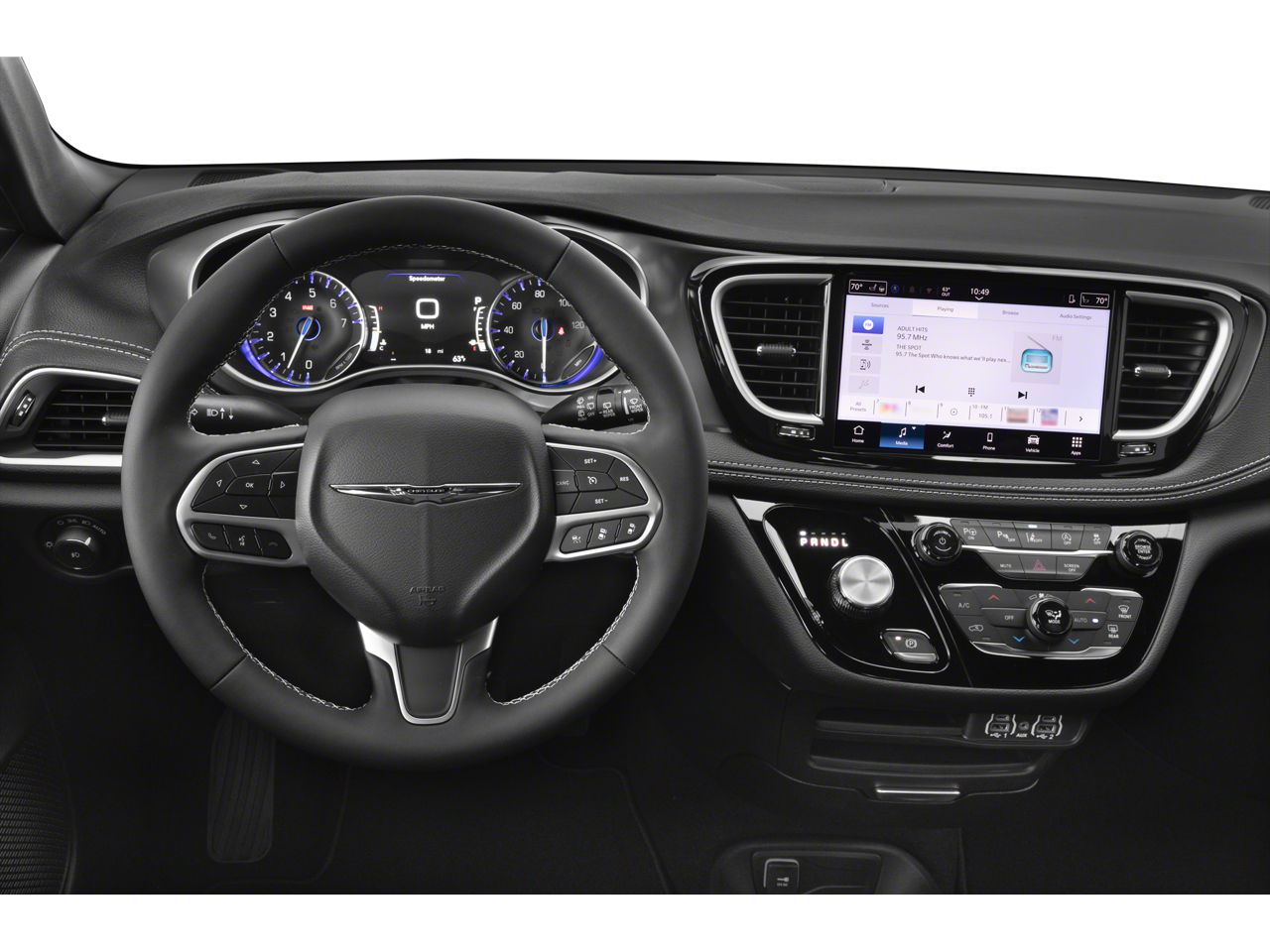 Experience versatility and modern comfort in this Black 2025 Chrysler Pacifica AWD Select. With all-wheel drive, a powerful Pentastar 3.6L V6 engine, and a smooth 9-speed automatic transmission, this Pacifica is ready for family adventures and daily drives alike. Enjoy peace of mind with advanced safety features like Front & Rear Automatic Emergency Braking, Pedestrian Detection, Lane Keeping Assist, Blind Spot Monitoring, and Rear Cross Traffic Alert. Stay connected on the go with Uconnect infotainment, a 10.1-inch touchscreen, wireless Apple CarPlay and Android Auto, Amazon Alexa, SiriusXM, and a Wi-Fi hotspot. The interior offers leatherette bucket seats, heated front seats and steering wheel, dual power sliding side doors, tri-zone automatic climate control, and flexible cargo space with fold-flat third-row seating. Convenience features include adaptive cruise control, remote engine start, power liftgate, and a customizable digital instrument cluster. With Chrysler Connect smart device compatibility and a host of thoughtful storage solutions, this Pacifica is designed for your busy lifestyle. Visit us today to see how the Pacifica Select redefines the family minivan.