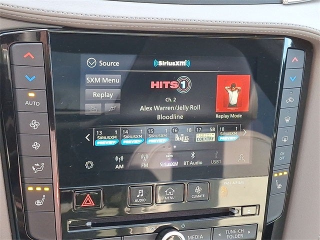 - Radio: HD Audio System -inc: 6 speakers, INFINITI InTouch, INFINITI InTouch services, INFINITI InTouch dual display system w/upper 8" and lower 7" HD touch screens, wireless Apple CarPlay, Android Auto, HD Radio technology, SiriusXM radio w/advanced audio features and 90-day complimentary trial, SiriusXM Travel Link w/90-day complimentary trial, INFINITI voice recognition, Siri Eyes Free, Wi-Fi hotspot, active noise cancellation, Bluetooth® hands-free phone system and streaming audio via Bluetooth®