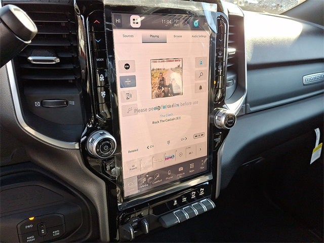 Big Horn Level 1 Plus Equipment Group (12 Touchscreen Display, 2 Way Rear Headrest Seat, 2nd Row In Floor Storage Bins, 4 Way Front Headrests, 40/20/40 Split Bench Seat, 4G LTE Wi-Fi Hot Spot, 9 Alpine Speakers w/Subwoofer, Air Conditioning ATC w/Dual Zone Control, Alexa Built-In, Anti-Spin Differential Rear Axle, Apple CarPlay, Auto Power-Folding Mirrors, Auto-Dimming Rear-View Mirror, Black Exterior Mirrors, Connected Travel & Traffic Services, Connectivity - US/Canada, Dual Glove Boxes, Emergency Vehicle Alert System (EVAS), Exterior Mirrors Courtesy Lamps, Exterior Mirrors w/Heating Element, Exterior Mirrors w/Supplemental Signals, Foam Bottle Insert (Door Trim Panel), Folding Flat Load Floor Storage, Footwell Courtesy Lamp, Forward & Reverse Utility Lights, Front Armrest w/Cupholders, Front Center Seat Cushion Storage, Front Seat Back Map Pockets, Global Telematics Box Module (TBM), Glove Box Lamp, Google Android Auto, GPS Antenna Input, GPS Navigation, HD Radio, Integrated Voice Command w/Bluetooth®, LED Bed Lighting, Locking Lower Glove Box, Luxury Steering Wheel, Manual Adjust 4-Way Front Passenger Seat, Mirror Running Lights, MOPAR Deployable Bed Step, MOPAR Spray In Bedliner, Off-Road Info Pages, Power 2-Way Driver Lumbar Adjust, Power Adjust 8-Way Driver Seat, Power Adjust Mirrors, Power Adjustable Convex Aux Mirrors, Power Heated Folding Telescopic Mirrors, Power Telescoping Mirrors, Premium Cloth 40/20/40 Bench Seat, Radio: Uconnect 5 Nav w/12.0 Display, Rear 60/40 Folding Seat, Rear Dome w/On/Off Switch Lamp, Remote Start System, Remote USB Port - Charge Only, Selectable Tire Fill Alert, SiriusXM Radio Service, SiriusXM w/360L, Steering Wheel Mounted Audio Controls, Storage Tray, and Trailer Tow Pages), Night Edition (Black Exterior Truck Badging, Black Interior Accents, Black Wheel Center Hub, Body Color Grille Surround, Gloss Black Nostrils/Mic Black Grille, Painted Front Bumper, Painted Rear Bumper, and Wheels: 20 x 8.0 Black Painted Aluminum), Quick Order Package 2UZ Big Horn, 3.73 Axle Ratio, 4-Wheel Disc Brakes, 6 Speakers, ABS brakes, Air Conditioning, Alloy wheels, AM/FM radio: SiriusXM, Apple CarPlay/Android Auto, Brake assist, Bumpers: chrome, Cloth 40/20/40 Bench Seat, Compass, Delay-off headlights, Driver door bin, Dual front impact airbags, Dual front side impact airbags, Electronic Stability Control, Front anti-roll bar, Front Center Armrest w/Storage, Front fog lights, Front License Plate Bracket, Front reading lights, Fully automatic headlights, Heated door mirrors, Illuminated entry, Low tire pressure warning, Manual Adjust 4-Way Driver Seat, Manufacturer's Statement of Origin, Occupant sensing airbag, Outside temperature display, Overhead airbag, Overhead console, Painted Flat Wheel-to-Wheel Side Steps, Panic alarm, ParkView Rear Back-Up Camera, Passenger door bin, Passenger vanity mirror, Power door mirrors, Power steering, Power windows, Radio data system, Radio: Uconnect 5 w/8.4 Display, Rear anti-roll bar, Rear Folding Seat, Rear seat center armrest, Rear step bumper, Rear window defroster, Remote keyless entry, Security system, Speed control, Tachometer, Tilt steering wheel, Traction control, Trip computer, Turn signal indicator mirrors, Variably intermittent wipers, Vinyl 2nd Row Seat, Voltmeter, and Wheels: 18 x 8.0 Polished Aluminum.